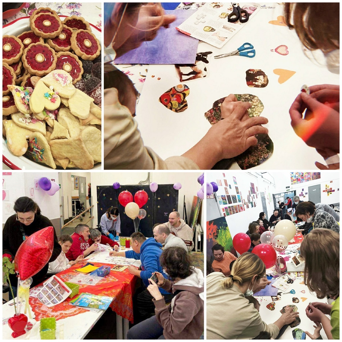 Вместе с нашими волонтёрами и сотрудниками они собрались за длинным столом, чтобы создать большой коллаж, посвященный дорогим для них людям, событиям, воспоминаниям. Участники делились мыслями о том, что для них значит любовь.